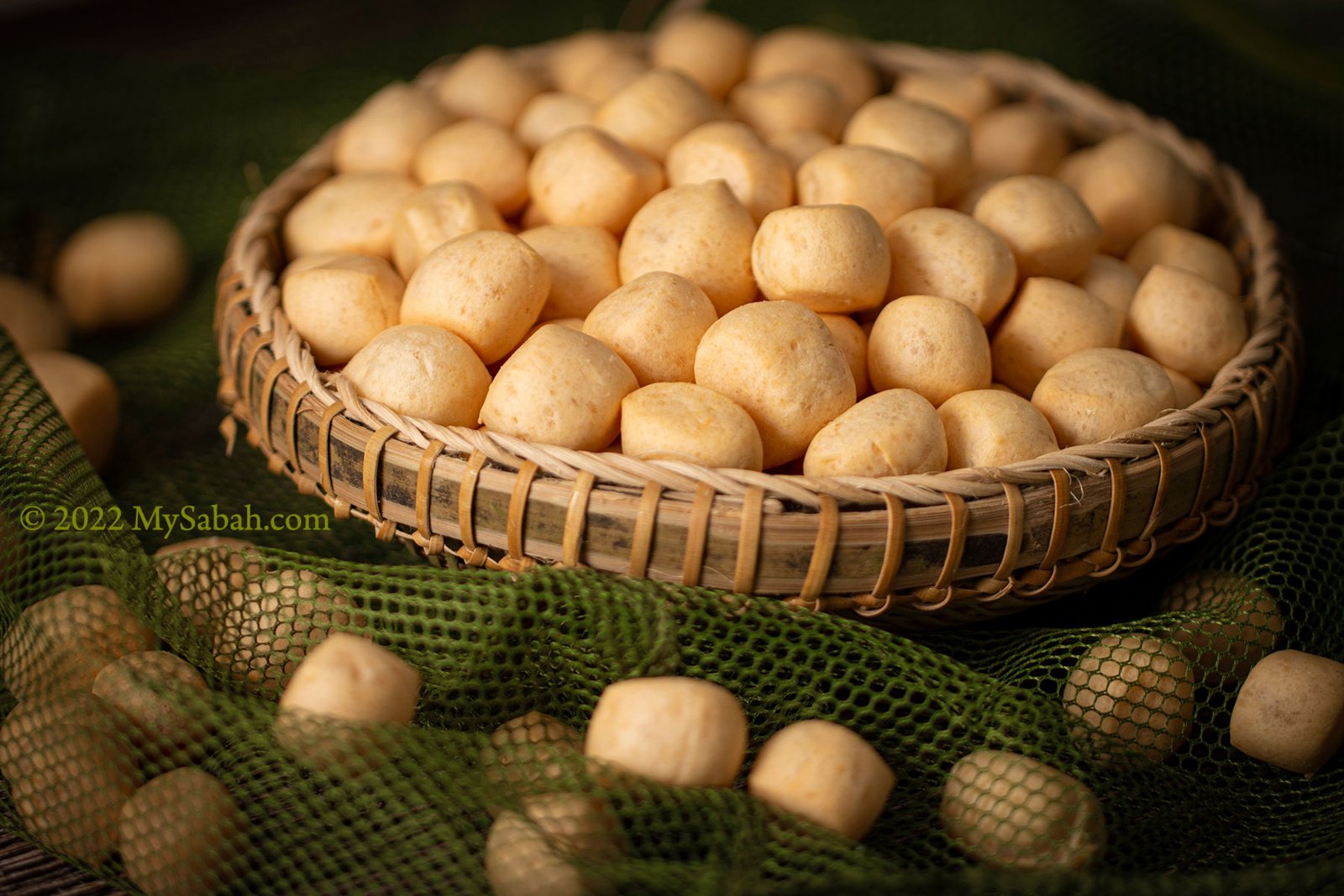 Kue kering yang diisi bubuk kacang hijau manis. Rasanyaa renyahh dii luar, maniss lembutt di dalamm.