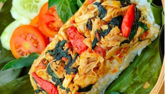 Rasa khas nasi jamblang muncul dari aroma daun jati yang memberikan sensasi tersendiri saat nasi masih hangat.