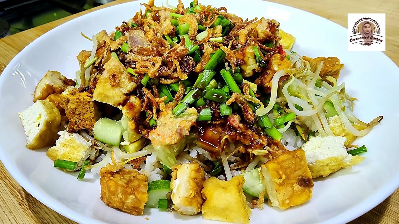 Nasi Lengko adalah sajian vegetarian yang sehat dan menyegarkan. Hidangan ini terdiri dari nasi putih yang disajikan dengan: